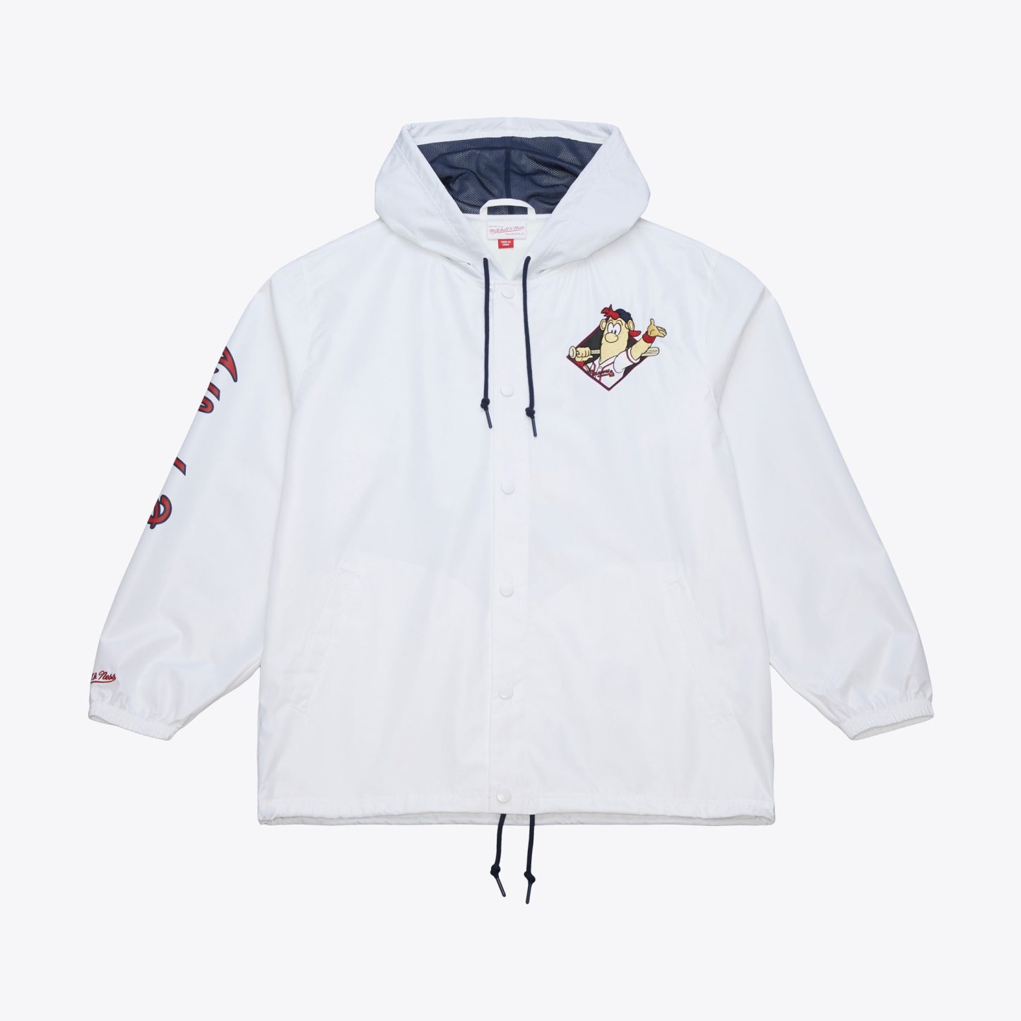Show off your Atlanta Braves pride in retro style with this Mascot Collection Coaches Full-Snap Hooded Windbreaker Jacket. It features embroidered and printed graphics that highlight Blooper and catch attention from all angles. The lightweight polyester construction makes this Atlanta Braves jacket perfect for mild weather, while an adjustable hem and elastic cuffs keep the warmth locked in.