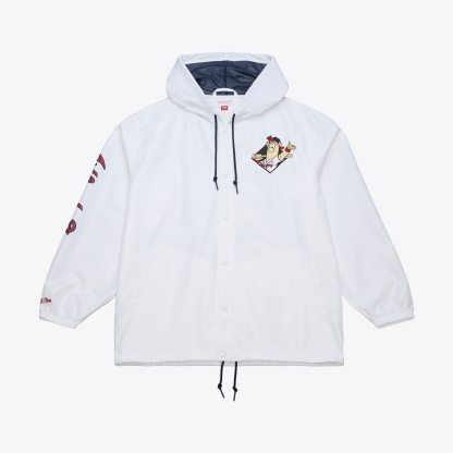 Atlanta Braves White Mascot Coaches Full-Snap Hooded Windbreaker Jacket