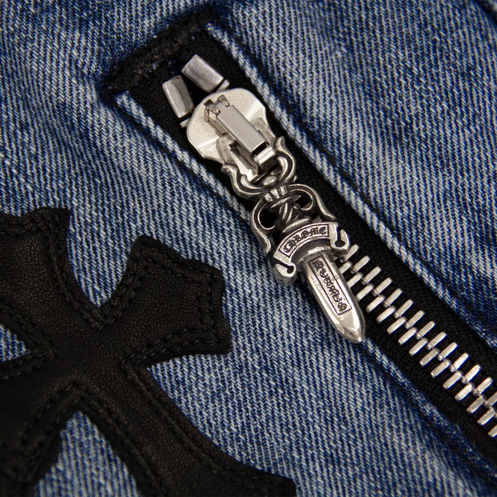 This jacket is more than just a piece of outerwear—it’s a testament to Chrome Hearts’ commitment to quality and cutting-edge design. The brand’s iconic motifs are subtly integrated into the leather patches, adding an exclusive touch that reflects Chrome Hearts’ legacy of luxury and craftsmanship. Elevate your wardrobe with this jacket, and experience the blend of classic and contemporary that only Chrome Hearts can deliver.