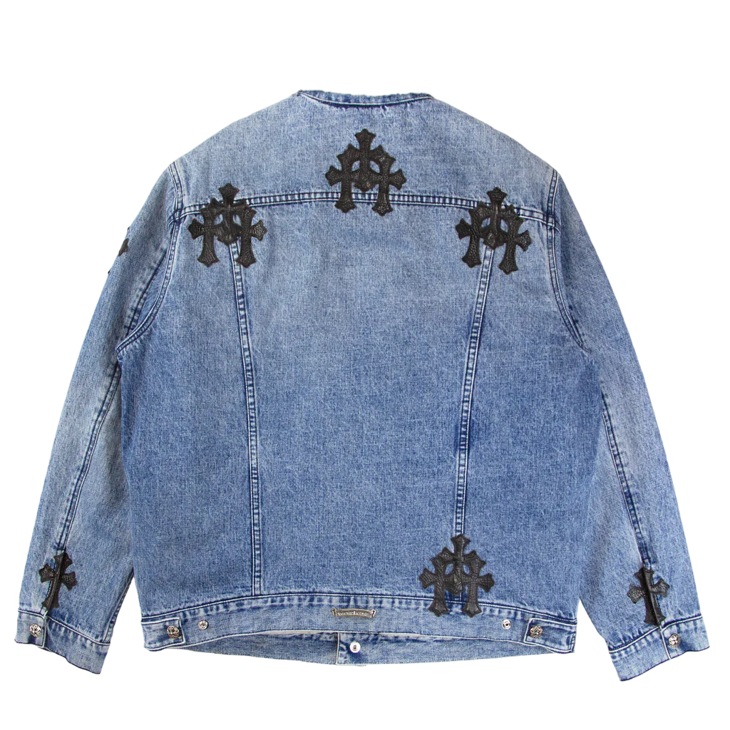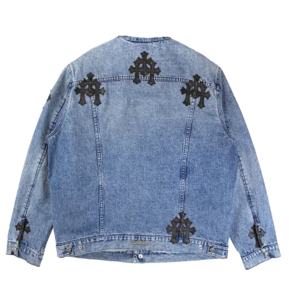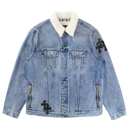 The Chrome Hearts Cross Patch Shearling Denim Trucker jacket is designed to be versatile, effortlessly transitioning from casual daywear to elevated evening attire. Whether layered over a simple tee for a relaxed look or paired with more formal pieces for a chic edge, this jacket is perfect for expressing your unique style across various settings.