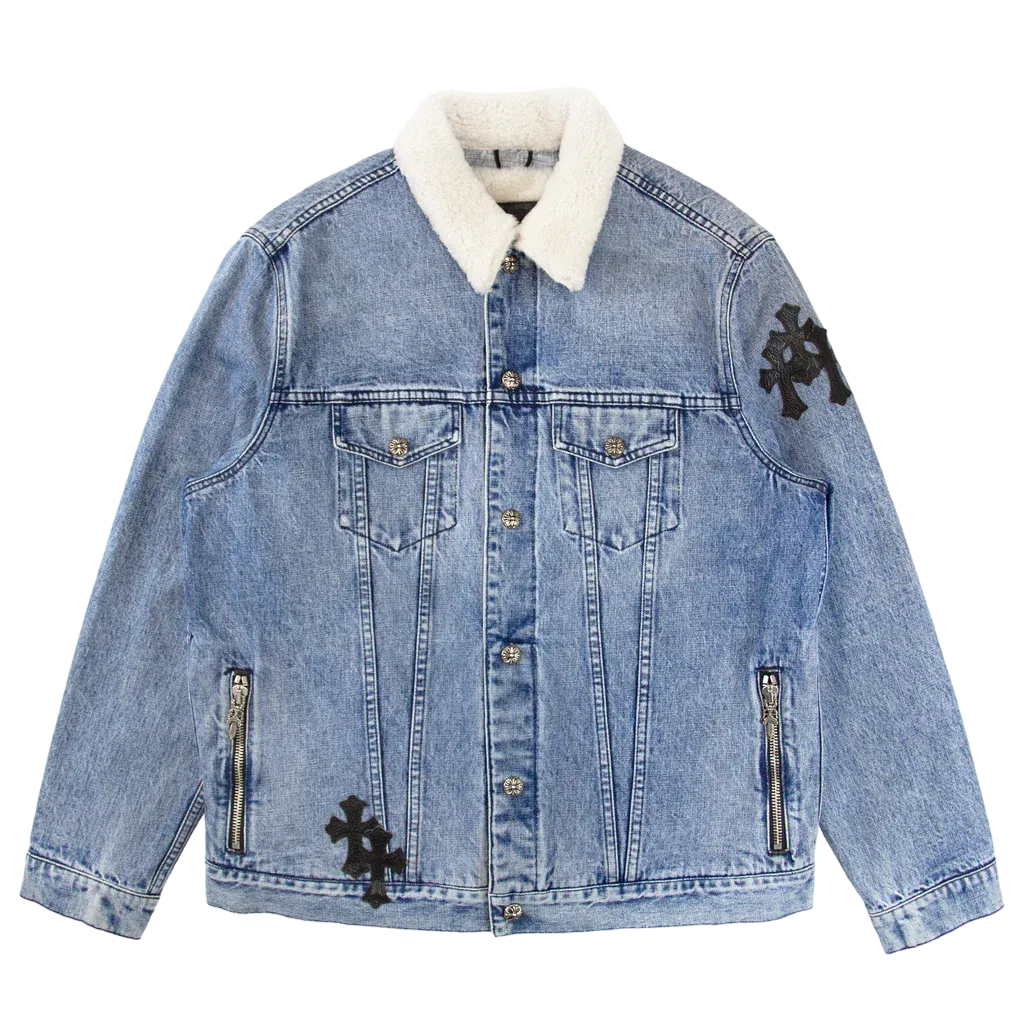 Cross Patch Shearling Denim Trucker | Chrome Hearts