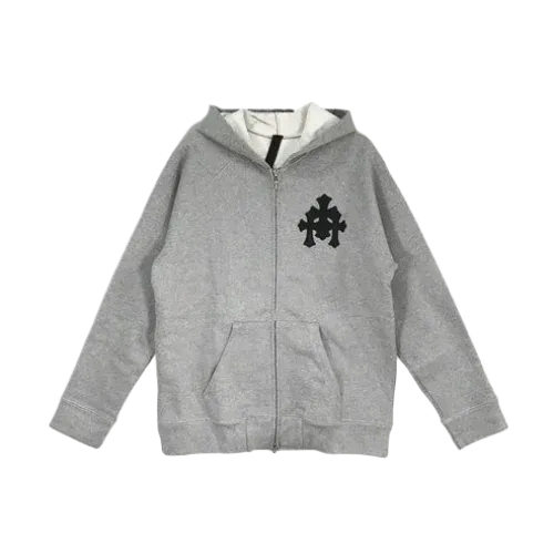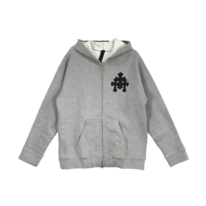 Step up your streetwear game with the Chrome Hearts Grey Hoodie Triple Cross. This hoodie features a distinctive triple cross patch logo in black on the front, showcasing the iconic Chrome Hearts style. Designed with practicality in mind, it includes a convenient zip-up closure and a zippered pocket, providing both security and style. Made from premium quality fabric, this hoodie ensures lasting comfort and durability.