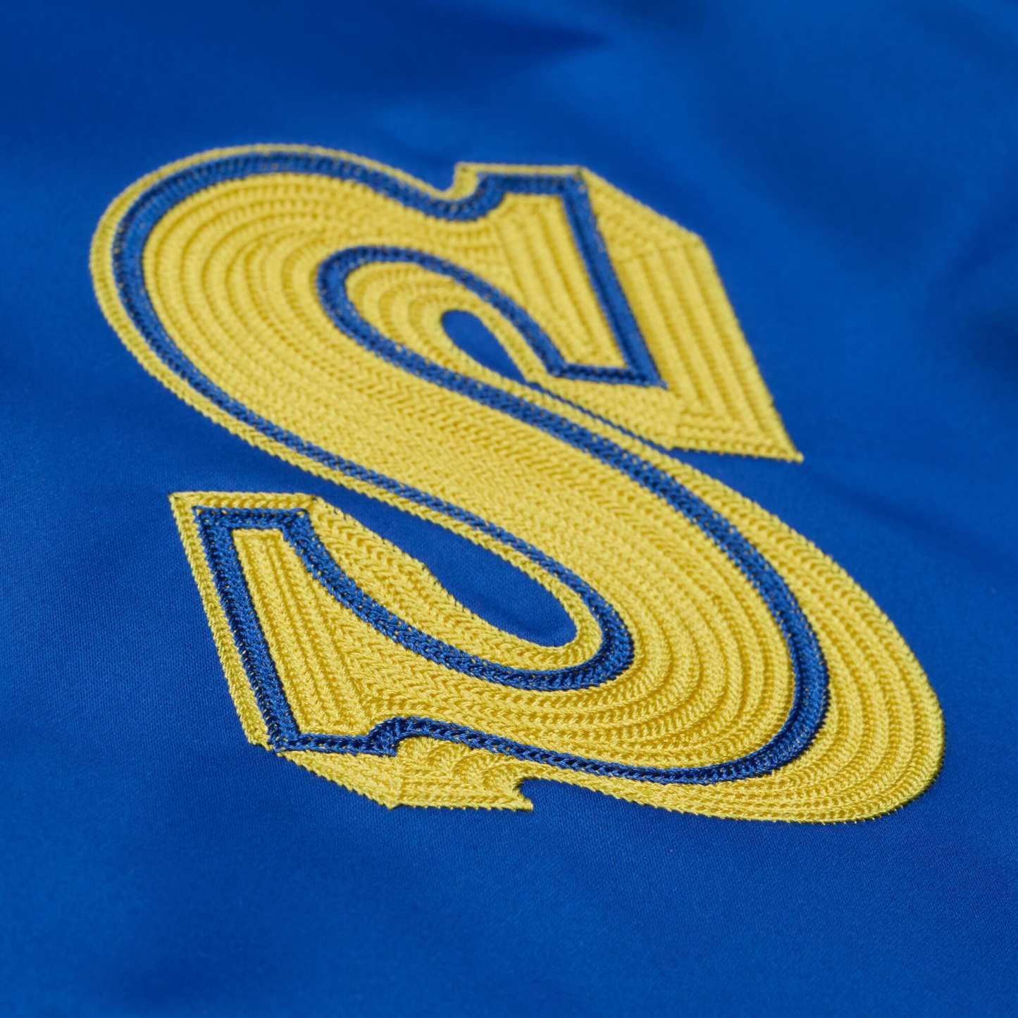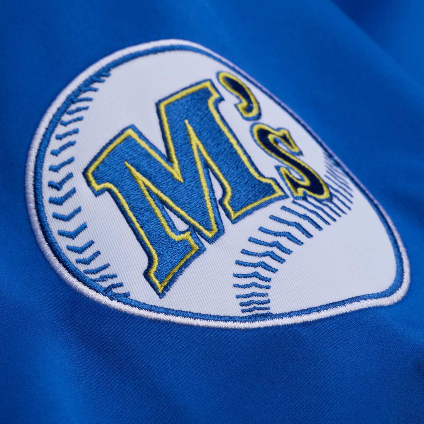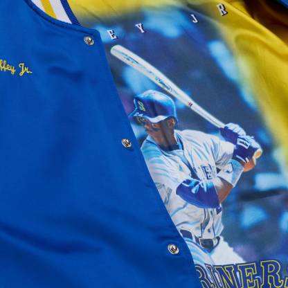 Celebrate a true Seattle Mariners icon with this Ken Griffey Jr. Player Collection full-snap jacket. Crafted from sleek satin fabric, it features embroidered applique details and is elevated by a sublimated, player-centric design on the interior lining. This stylish jacket is finished with rib-knit trims for a classic look, ensuing it is the perfect historical addition to your Seattle Mariners wardrobe.