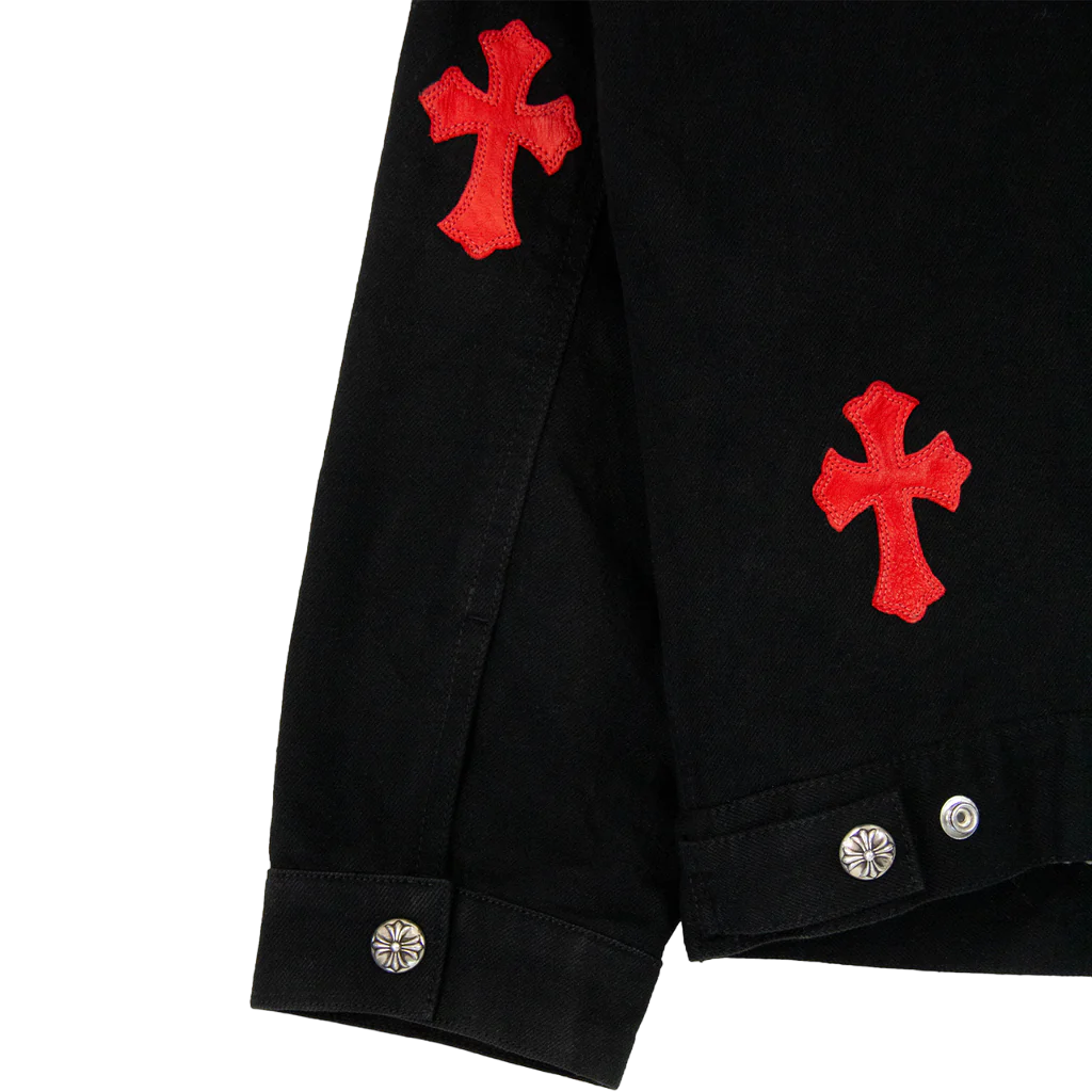 This jacket is more than just a piece of outerwear—it’s a testament to Chrome Hearts’ commitment to quality and cutting-edge design. The brand’s iconic motifs are subtly integrated into the leather patches, adding an exclusive touch that reflects Chrome Hearts’ legacy of luxury and craftsmanship. Elevate your wardrobe with this jacket, and experience the blend of classic and contemporary that only Chrome Hearts can deliver.