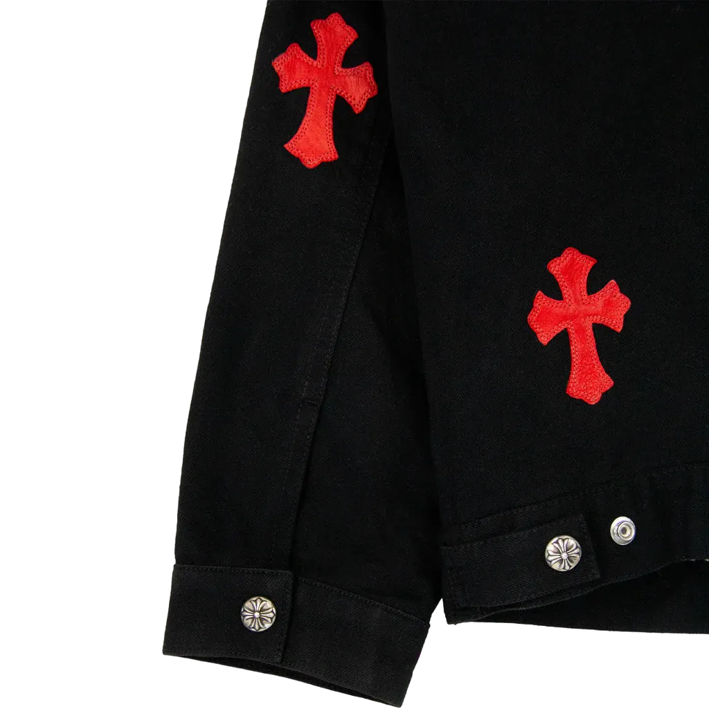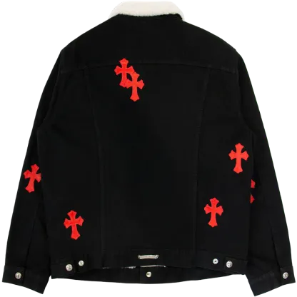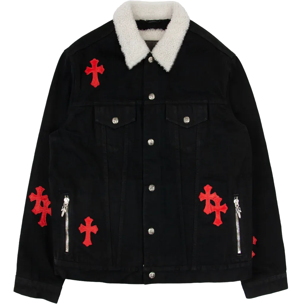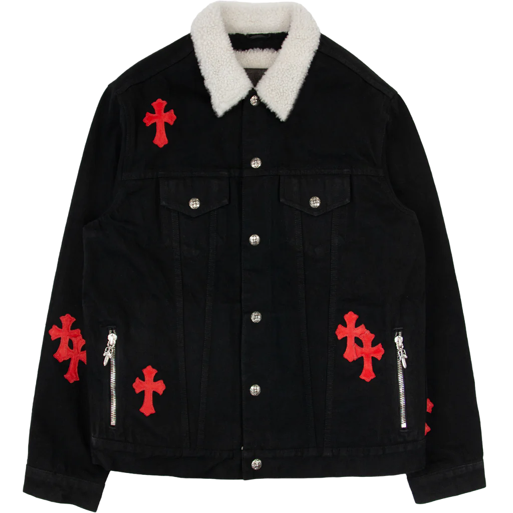 The Chrome Hearts Leather Patch Shearling Denim Trucker jacket is a unique fusion of rugged denim and luxurious shearling, perfectly embodying the brand’s distinctive edge. This jacket is a bold statement piece that combines timeless style with modern craftsmanship, offering a unique addition to any fashion-forward wardrobe.