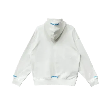 Elevate your casual wardrobe with the Chrome Hearts Logo Pullover Hoodie. Crafted from premium fleece material, this white hoodie offers a cozy and comfortable fit perfect for any season. The light blue logo print adds a fresh and stylish contrast, making it a standout piece in your collection. Its relaxed fit and classic design ensure you can pair it effortlessly with your favorite bottoms for a laid-back yet sophisticated look.