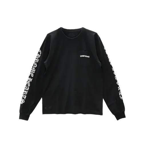This long sleeve tee can be effortlessly paired with Chrome Hearts denim for a casual look or dressed up with one of their leather jackets for a more edgy, streetwear-inspired vibe. Complete your outfit with Chrome Hearts accessories, such as their signature rings or a trucker hat, to add a personalized touch. The Script Scroll Logo Long Sleeve T-Shirt is not just a piece of clothing but a statement of allegiance to a brand that values luxury and individuality.