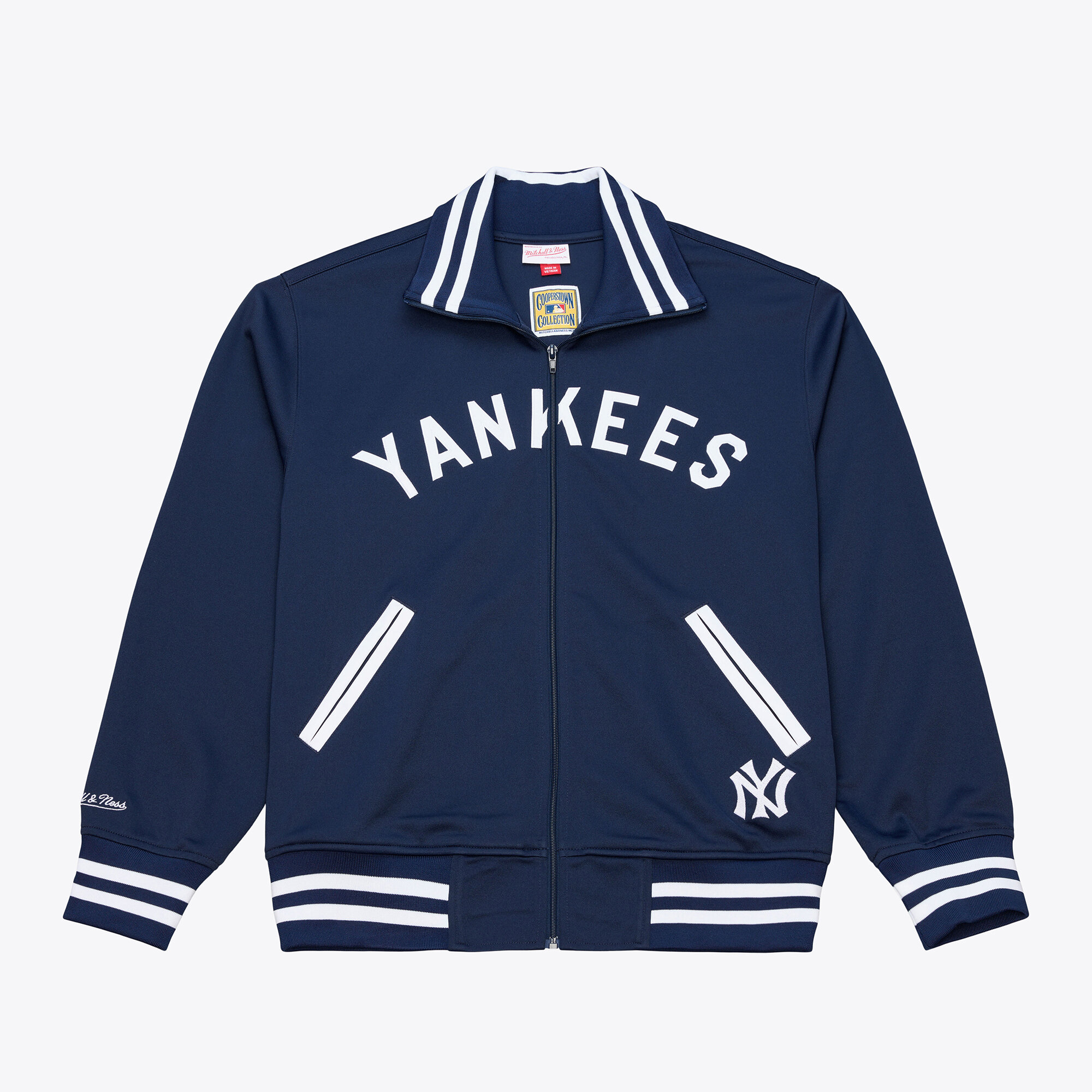 Celebrate every New York Yankees victory in style with the Playoff Win Full-Zip Jacket. Built to withstand moderate temperatures, this jacket is an ideal layering piece for cool game days or evenings out. The rib-knit trims feature woven stripes, adding a touch of classic MLB flair, while two front pockets provide convenient storage. Plus, embroidered fabric applique graphics let you rep your New York Yankees with pride.