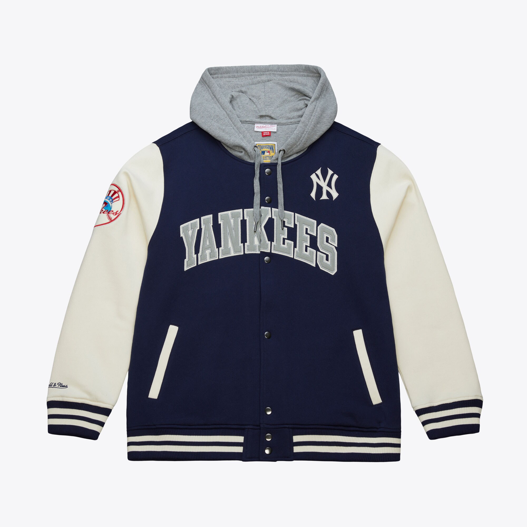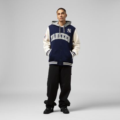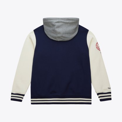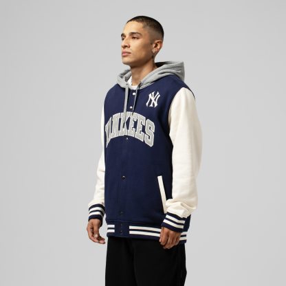 Gear up for gameday with this New York Yankees Sideline Fleece Full-Snap Jacket. Featuring embroidered fabric applique graphics, this jacket is the perfect way to represent your favorite MLB squad. With cozy fleece lining, rib-knit trims and an adjustable drawstring hood, it's a must-have for any dedicated New York Yankees fan.