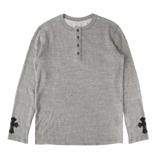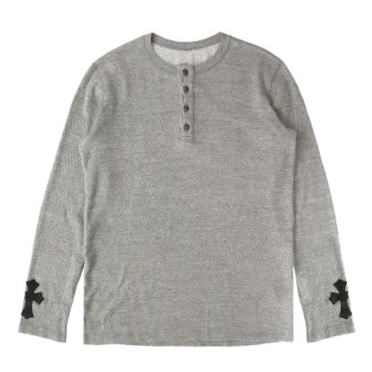 The Chrome Hearts Patchwork Thermal Henley Long Sleeve T-Shirt is a distinguished blend of modern craftsmanship and classic style. Designed with a keen eye for detail, this t-shirt exemplifies Chrome Hearts’ dedication to high-quality materials and innovative design, making it a standout addition to any wardrobe.