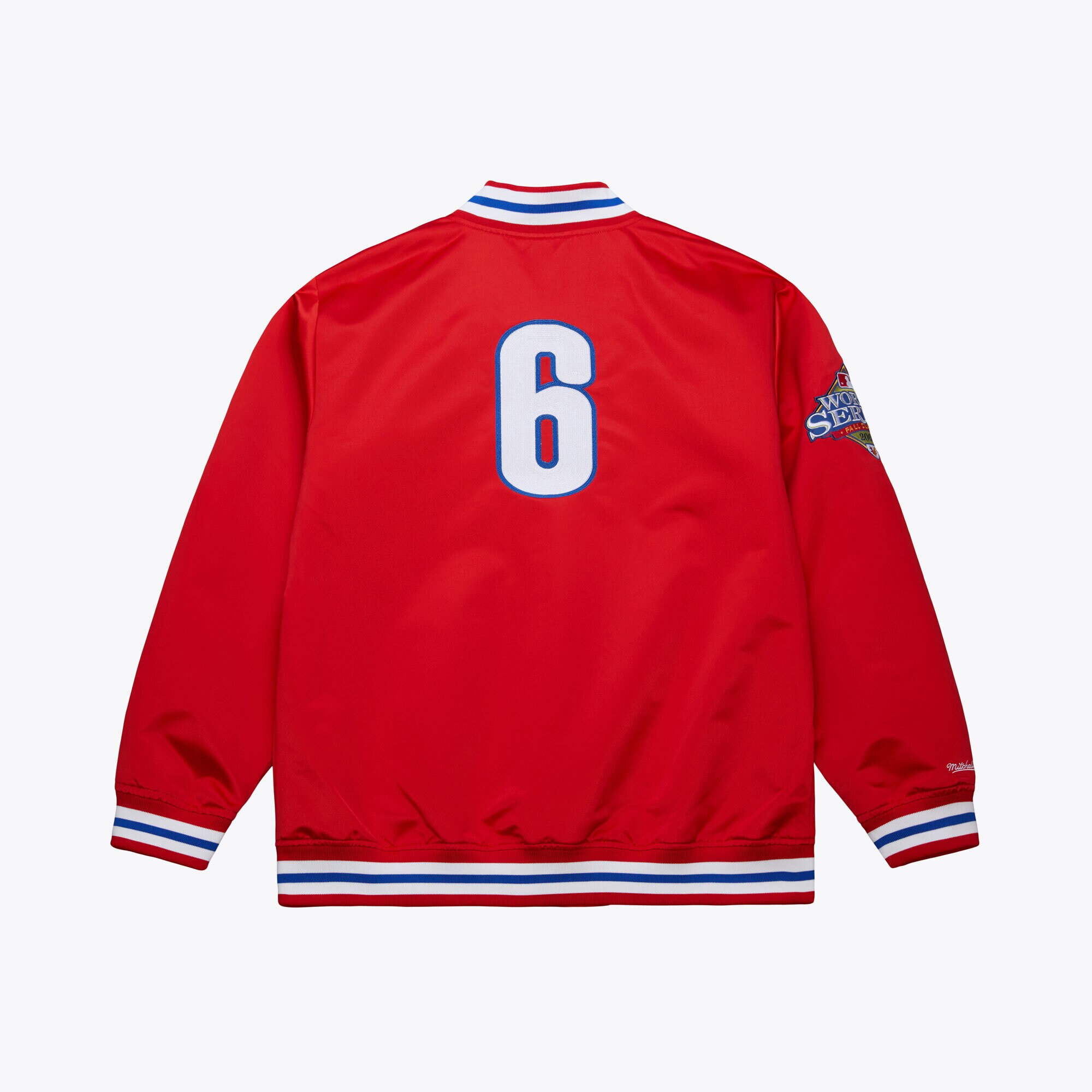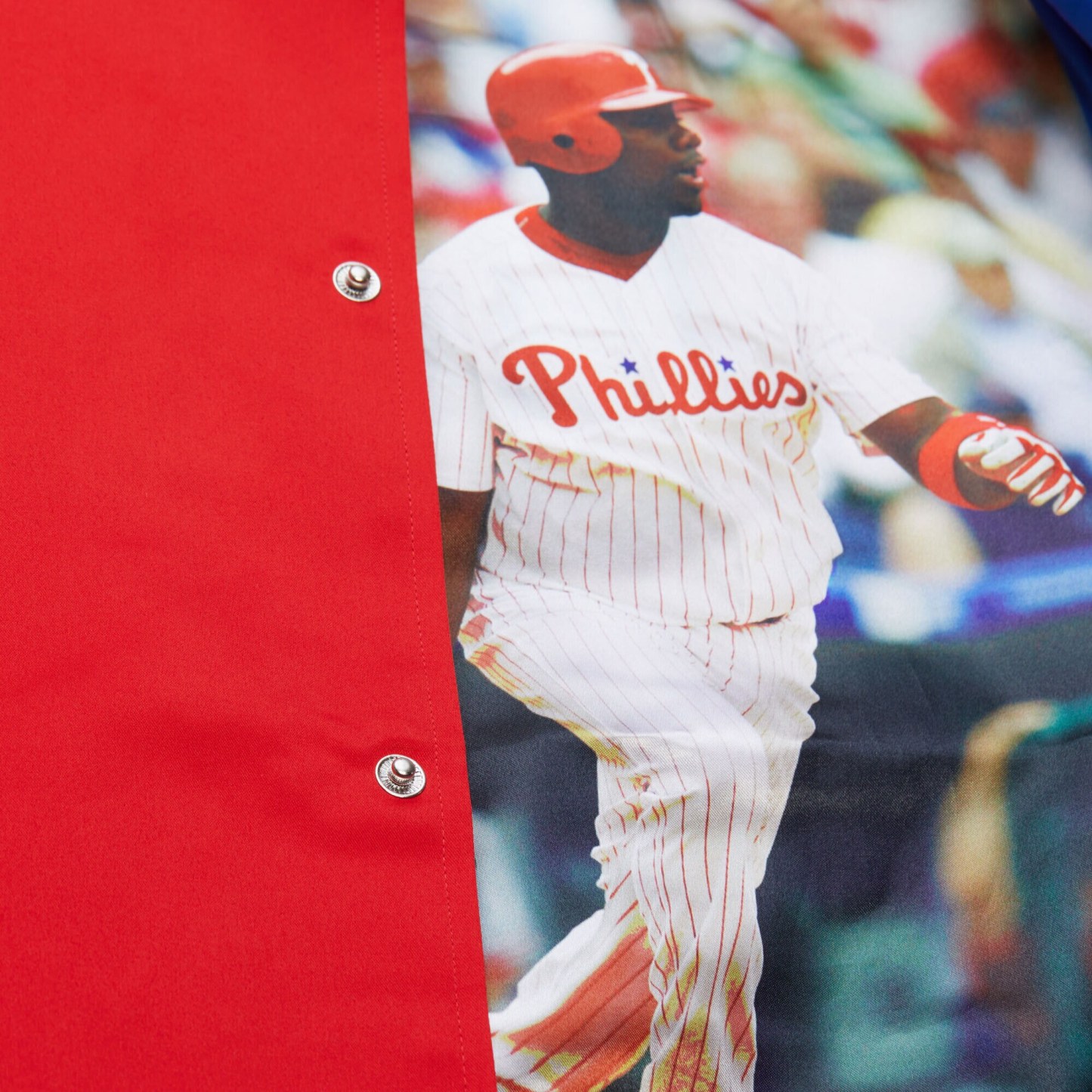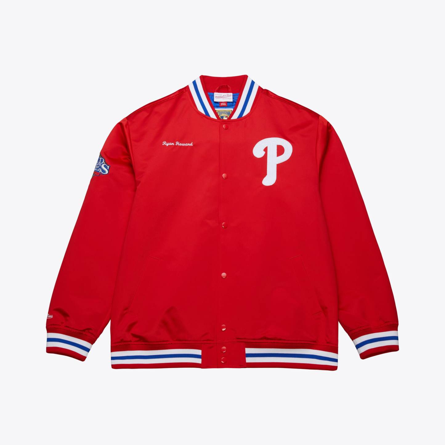 Celebrate a true Philadelphia Phillies icon with this Ryan Howard Legends Collection Vintage Jacket. Crafted from sleek satin fabric, it features embroidered applique details and is elevated by a sublimated, player-centric design on the interior lining. This stylish jacket is finished with rib-knit trims for a classic look, ensuing it is the perfect historical addition to your Philadelphia Phillies wardrobe.