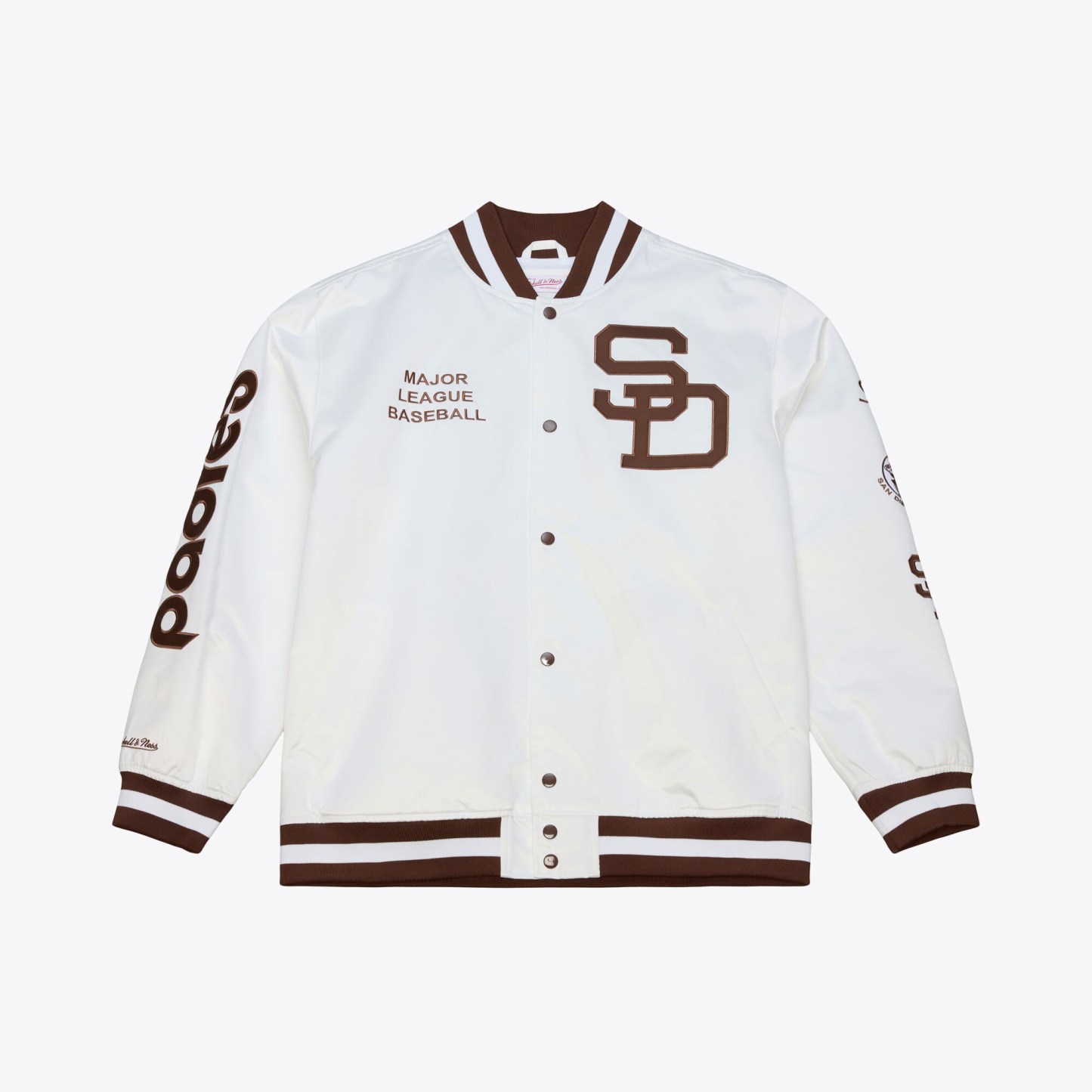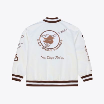 Stay frosty and rep your San Diego Padres all season long with this lightweight full-snap jacket. It features an eye-catching arctic white colorway and embroidered team graphics for a bold look perfect for game days. This jacket is finished with a luxurious satin fabric and rib-knit trims for premium comfort and elevated style while cheering on the San Diego Padres.