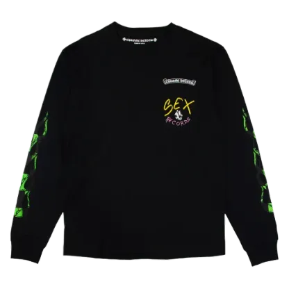 The Chrome Hearts Sex Records LS TEE Long Sleeve T-Shirt stands as a testament to the brand’s rebellious spirit and avant-garde aesthetic. This standout piece merges distinctive design with high-quality craftsmanship, creating a unique garment that makes a bold statement.