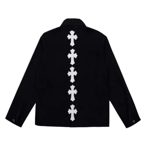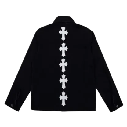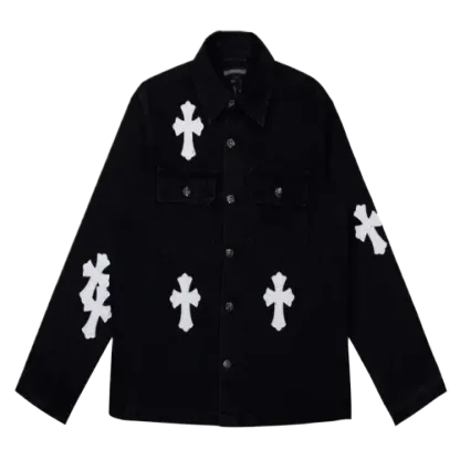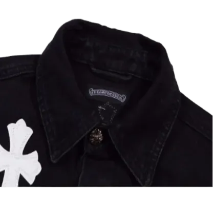 Constructed from premium denim, the White Leather Patch Denim Jacket is designed to turn heads. The jacket features Chrome Hearts’ signature cross patches meticulously stitched onto the fabric, creating a striking visual contrast that embodies the brand’s iconic style. The carefully selected denim offers durability and comfort, making it not just a fashion statement but also a long-lasting addition to your wardrobe.