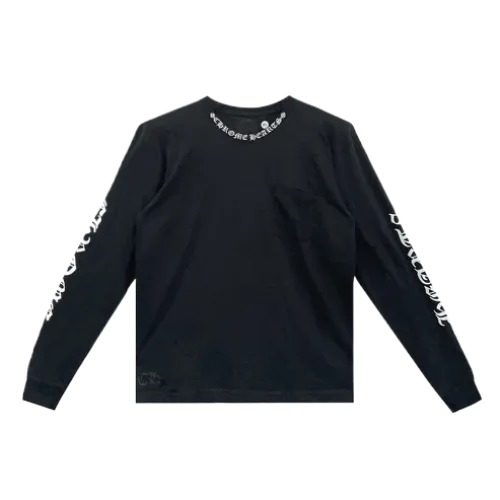 The Script Collar Logo in White Long Sleeve Tee from Chrome Hearts brings a refined edge to your everyday wardrobe. This tee features a minimalist design with the iconic Chrome Hearts script logo subtly embroidered around the collar, offering a touch of luxury in a low-key way. Made from high-quality cotton, the shirt ensures all-day comfort while maintaining its shape and feel after every wear.