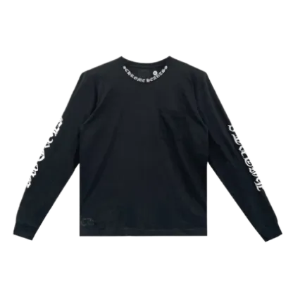 This versatile piece pairs well with a variety of Chrome Hearts bottoms, like distressed jeans or sweatpants, for a laid-back yet stylish look. For a more polished ensemble, throw on a Chrome Hearts leather jacket and finish with one of their signature accessories, such as a silver pendant necklace or a classic trucker hat. Whether you’re dressing up or down, this Script Collar Logo Tee serves as the perfect foundation for any Chrome Hearts outfit.